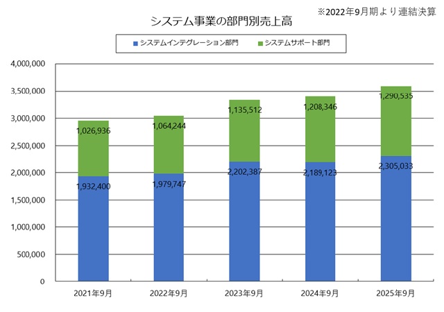 システム事業の部門別売上高